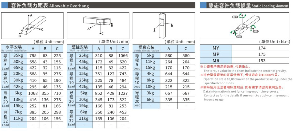 容许负载力距表